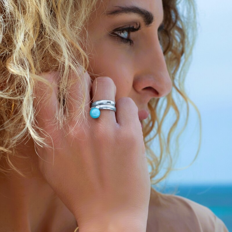 Anello “Altamarea” in Argento 925 con Perla Blu (Ø 5 mm.) realizzata con Acqua di Mare cristallizzata dell’Isola d’Elba.